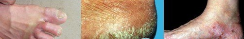 (3)鱗屑角化型:癥狀是足底、足緣、足跟部皮膚腳趾增厚、粗糙、脫屑,鱗屑成片狀或小點狀,反復脫落。冬季趾縫間皮膚發(fā)生裂隙,夏季產(chǎn)生水皰,有痛感。常因搔抓引起繼發(fā)性感染,并發(fā)膿包瘡、淋巴管炎、淋巴結(jié)炎、蜂窩組織炎、丹毒、敗血癥等疾患。