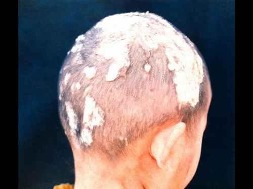 頭癬是頭皮和頭發(fā)的淺部真菌感染,根據(jù)病原菌和臨床表現(xiàn)的不同可分為黃癬、白癬和黑點(diǎn)癬三種。頭癬好發(fā)于兒童,傳染性較強(qiáng),易在托兒所、幼稚園、小學(xué)校及家庭中互相傳染。主要通過(guò)被污染的理發(fā)工具傳染,也可通過(guò)接觸患癬的貓、狗等家畜而感染。