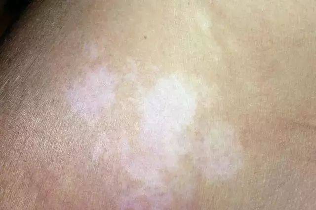 2、顏色:皮損色素脫失,呈瓷白色,邊緣有色素沉著加深。