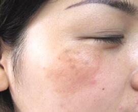 二、臨床表現(xiàn)女性多見,尤其好發(fā)于育齡期婦女,男性也可發(fā)生。皮損常對(duì)稱分布于面部,以顴部、頰部及鼻、前額、頦部為主,一般不累及眼瞼和口腔 粘膜。表現(xiàn)為淡褐到深褐色的色素斑,邊緣清楚或呈彌漫性,局部無(wú)炎癥及鱗屑,也無(wú)自覺癥狀。其色素隨內(nèi)分泌變化、日曬等因素可稍有變化,部分患者分娩后或 停服避孕器后可緩慢消退,但大多數(shù)患者病程難于肯定,可持續(xù)數(shù)月或數(shù)年。