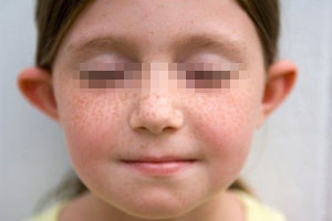 3、遺傳因素:常染色體遺傳是雀斑主要成因。多從5歲左右兒童開(kāi)始,女性居多,春夏重,秋冬輕。淡褐色至黃褐色針尖到米粒大小的斑點(diǎn),對(duì)稱(chēng)分布在面部特別是鼻部。