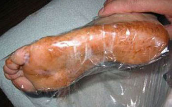 6、足癬和股癬:足癬和股癬是由真菌感染而引起的皮膚病,由于真菌喜好溫暖和潮濕,因此,常在夏季加重。足癬表現(xiàn)為足趾間脫皮、浸漬糜爛,或足側(cè)緣出現(xiàn)多數(shù)水皰,可有瘙癢,也可不癢,如不治療,皮疹可逐漸向外擴(kuò)大。股癬表現(xiàn)為大腿內(nèi)側(cè)、臀裂部的環(huán)狀紅斑脫屑,呈離心性擴(kuò)大,周圍??梢娦∏鹫?,自覺瘙癢或疼痛。