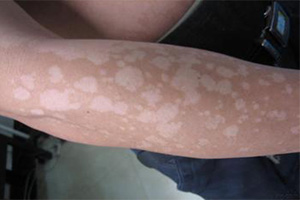 3、白斑型:除去鱗屑或痊愈后,遺留色素暫時(shí)減退。